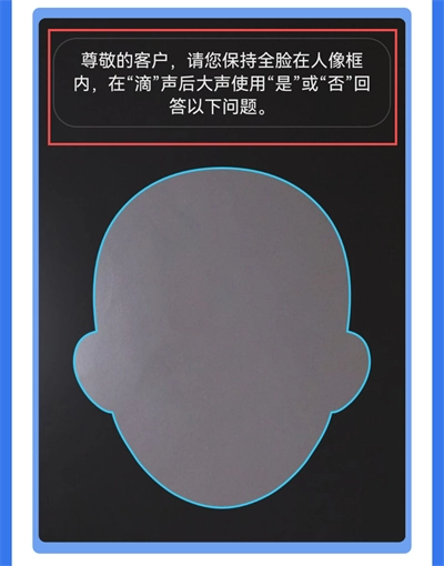 自助单向视频时,请保持正脸处于相框内,根据提示完成指定动作并清晰回复所提问题,如多次验证不通过,将由人工坐席提供服务