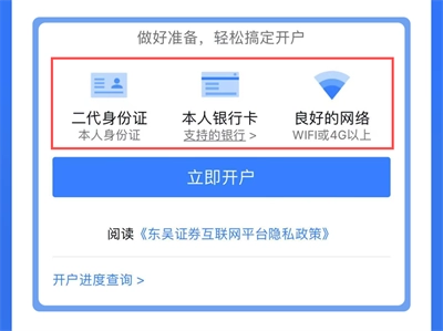打开东吴证券,进入到开户首页,点击立即开户按键