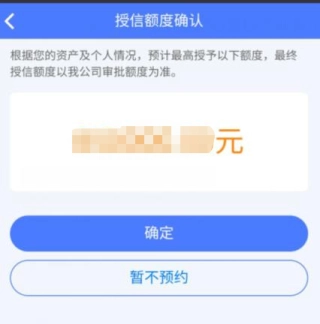 7、点确定后,预约信息提交至总部审核,审核通过后会有短信通知,最终的授予额度可通过掌厅查看