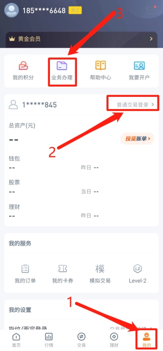 1、进入恒泰九点半——右下角我的——普通交易登录——业务办理