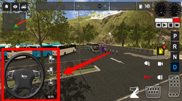 1.启动准备就绪:进入游戏后点击方向盘图示,切换成驾驶视角开始操作。