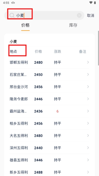 3、以小麦为例,就能看到各个地区小麦的报价。