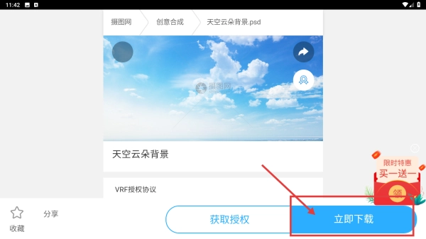 3、点击立即,获取并保存该素材到本地。