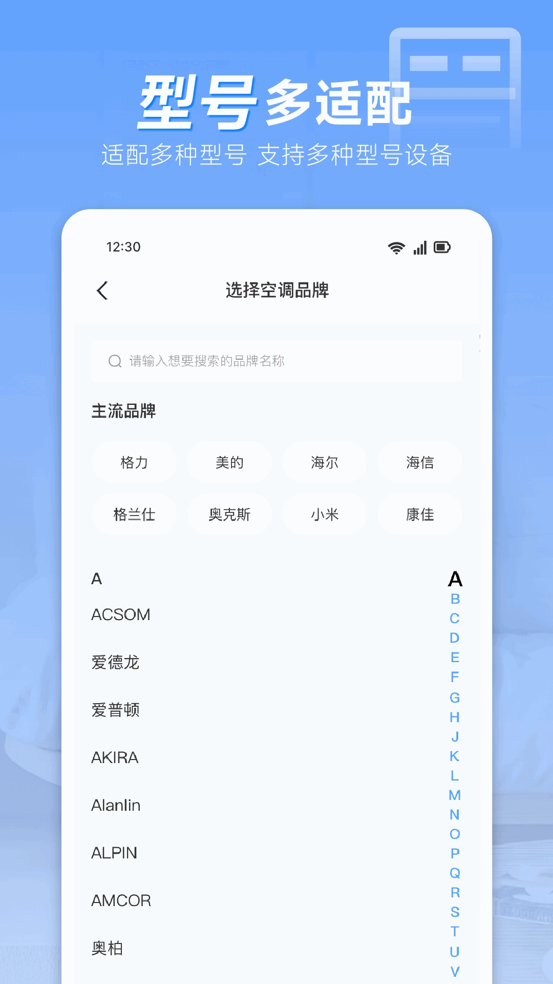 一键连接和绑定设备,方便远程控制,并可按型号搜索遥控器。