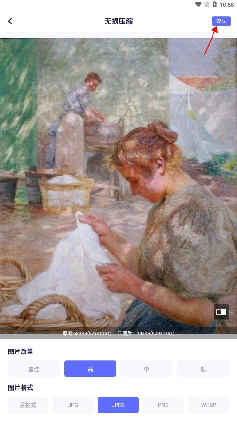 3、用户还能够选择想要的图片质量、图片格式,点击右上角的保存就能保存更改