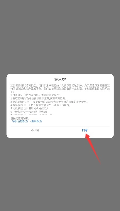 1首次使用时,需阅读平台的服务条款及隐私政策,确认无误后,点击“同意”按钮方可进入应用。