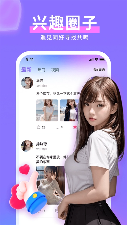 兴趣匹配:应用通过智能算法和用户配置的兴趣标签,帮助用户找到与自己兴趣相投的人。无论是音乐、电影、运动还是旅行等,用户都可以找到与他们志同道合的伙伴,一起分享和探讨共同的兴趣话题。