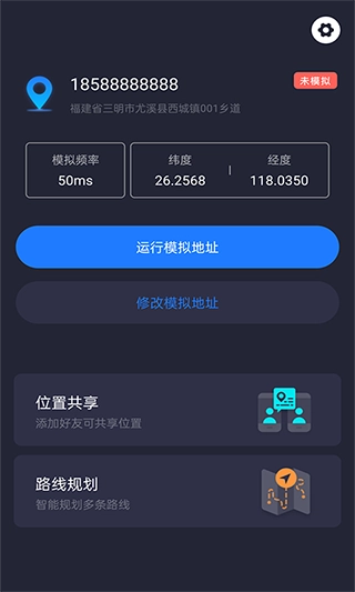 2、查经纬度:选择模拟定位后查询其的经纬度,并支持一键规划从当前位置到模拟定位的路线。