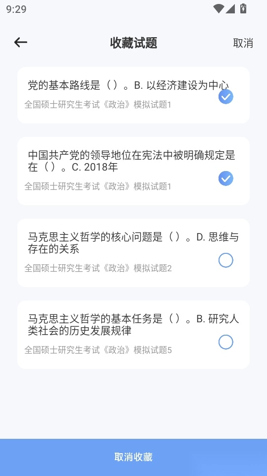 5.如此用户就可以通过勾选试题,将试题进行取消收藏了