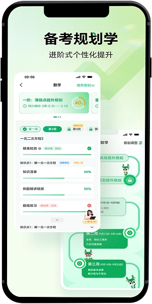 可帮助用户实时检测自己的学习进度,并再行进行调整规划学习。