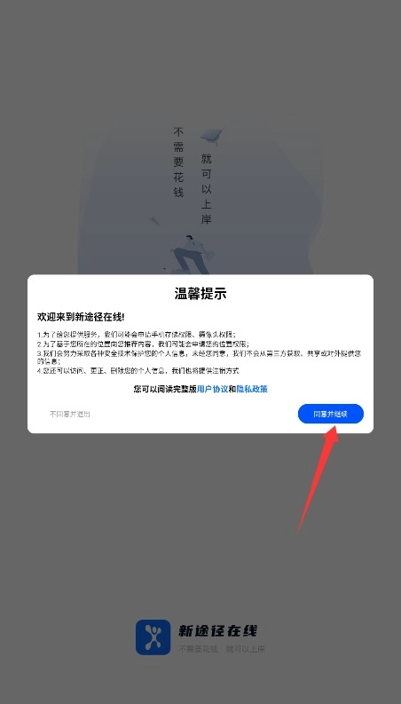 1首次使用时,需阅读平台的服务条款及隐私政策,确认无误后,点击“同意并接受”方可进入应用。