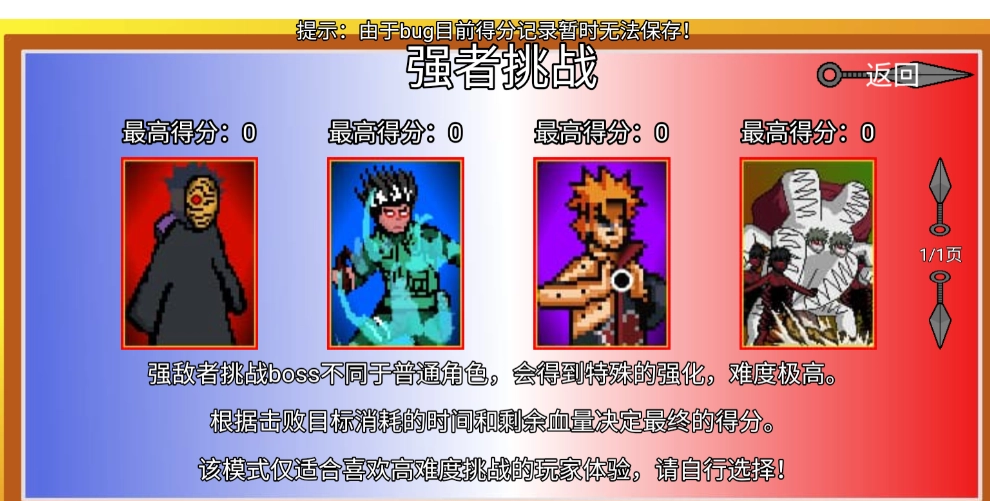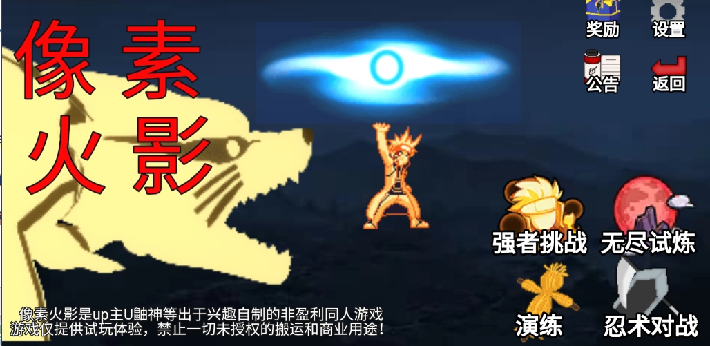 像素火影仙自九鸣版本,这是玩家自制的像素火影版本,为玩家带来了丰富的忍术学习机会。它高度还原了诸多经典的火影玩法,玩家之间能展开一场又一场颇具实力的PK对决。游戏内有着丰富多样的模式,玩家可轻松加入其中。在这里,玩家能够体验到奇幻十足的战斗乐趣。不仅如此,该版本还提供了多种难度选择,游戏里包含大量趣味玩法。大家只需轻松点击,就能感受不同的真实趣味,各种给力内容尽在此处。快来点击对战不同模式吧!