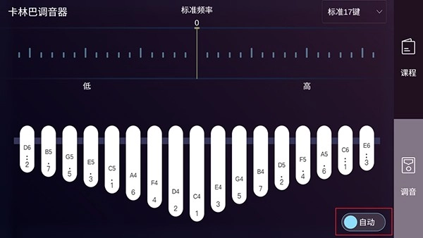 1. 取出自己的卡林巴拇指琴,打开卡林巴拇指琴调音器,将自动模式关闭,接着开始进行调音。