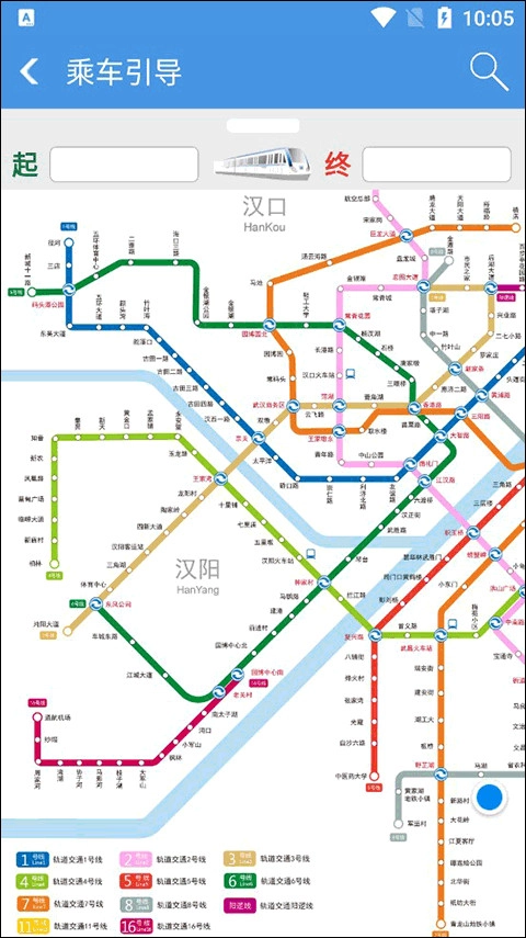 2、进入界面后我们可以看见整个武汉地铁的线路图,这个时候我们只需设置好起点和终点就可以了。