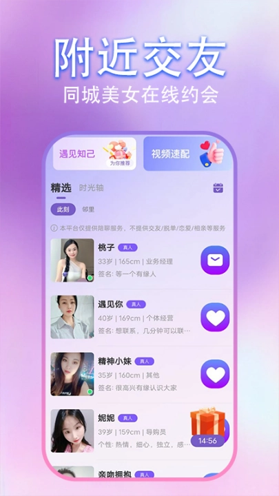 心心聊正版,这是一款专门为单身人士匠心打造的同城交友平台。它的目标,是让每一份缘分都能如期待般降临,助力你毫无负担地摆脱单身状态,开启浪漫美妙的恋爱旅程。