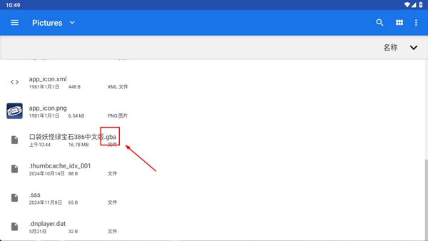 2、接着在手机文件夹找到要导入的gba游戏,需要玩家自己准备(后缀为.gba的文件)