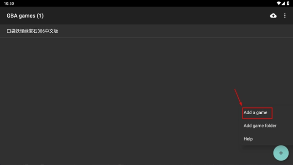 1. 第一步,打开GBA模拟器,点击右下角的“+”号,接着选择“Add a game”来添加游戏。