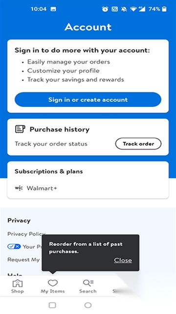 在“Services”板块中可访问沃尔玛提供的会员特权、扫码结账、自提服务等内容。