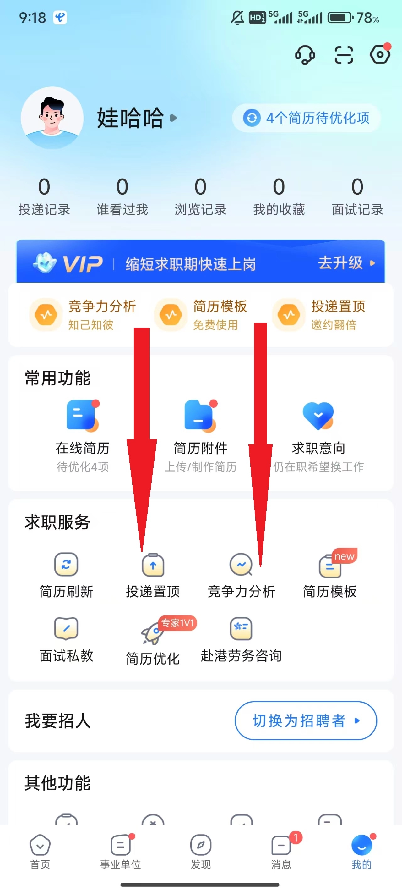 5、简历编辑:在线完成简历的编辑,为你提供优质的简历模块;