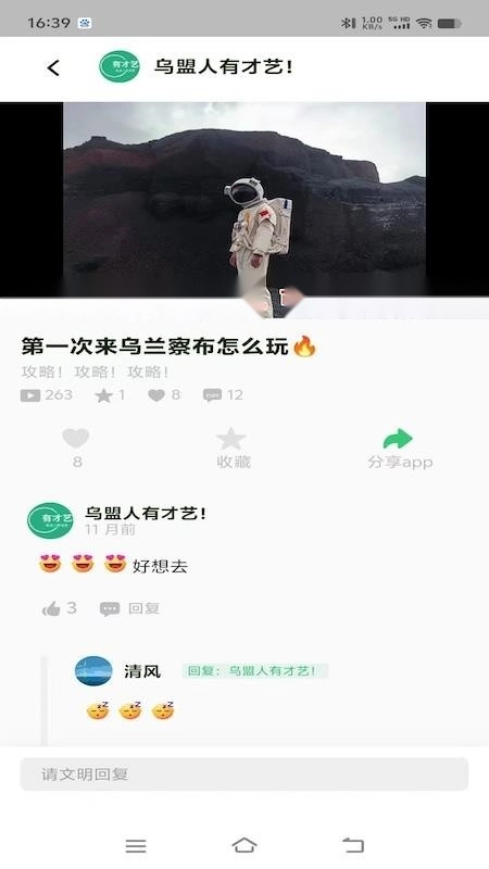 2、看到自己喜欢的内容可查看详情,并能点赞、收藏、评论和分享;