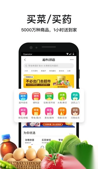 美食、生鲜、超市百货全覆盖,动动手指,畅享便捷购物体验,支持多种支付方式。