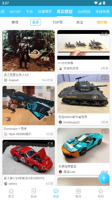 1、并安装Hpoi手办维基,完成后打开软件,通过底部菜单栏中间选项进入hpoi相册版块,再点击右上角加号按钮。