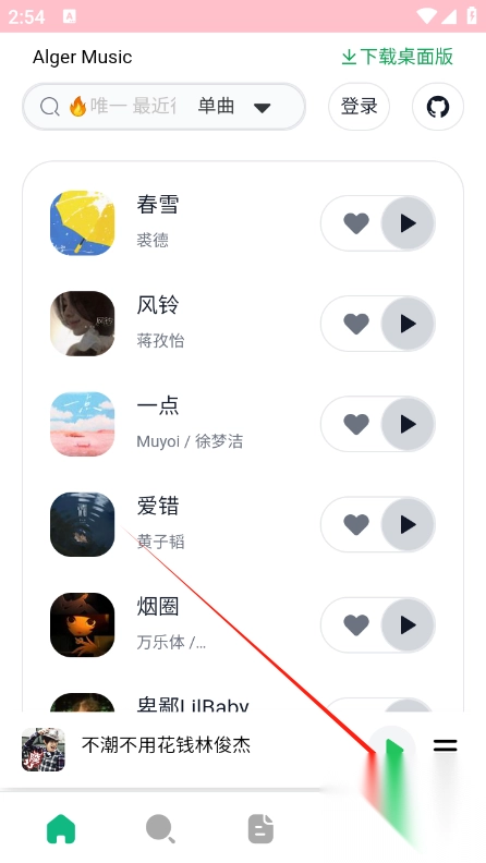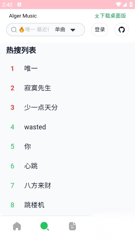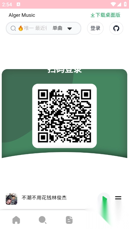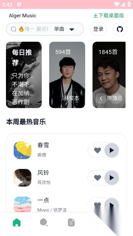 1、在AlgerMusicPlayer的首页,能够借助推荐内容,或者通过手动搜索的方式,快速找到想听的歌曲。