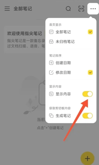 指尖笔记怎么开启首页显示内容