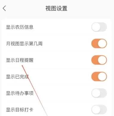 3、于“视图设置”界面,点击“显示日程提醒”,便可开启。
