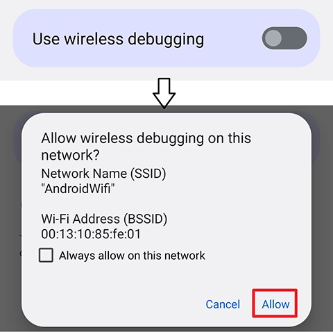 4、在“无线调试”界面中,选择“使用配对码配对设备”