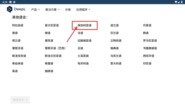 1. 打开DeepL,于“其他语言”里挑选保加利亚语作为目标语言。