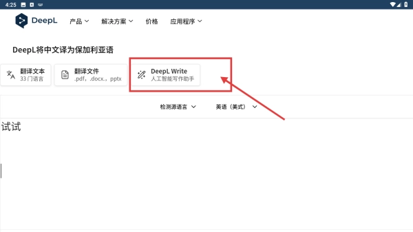 3、如需优化文本,点击DeepL-Write,使用AI写作助手功能提升文案质量。