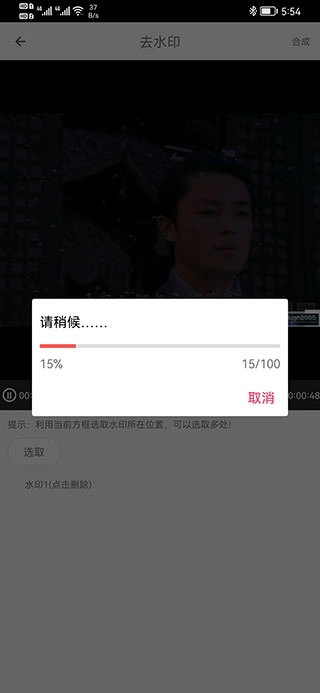 3、去水印非常简单,在视频里有一个框框,把水印款在里面,在点击选取,在下面就出现列表。