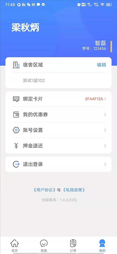 2. 便捷生活服务:提供一站式生活服务,涵盖饮食、洗衣、热水供应等。支持微信、支付宝充值,可查询消费订单,清晰掌握每一笔支出,还能享受消费优惠。