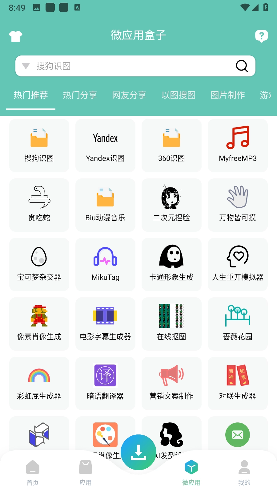 6.点击微应用,超多实用的手机小工具一应俱全,以图搜图、图片制作、文字相关等等