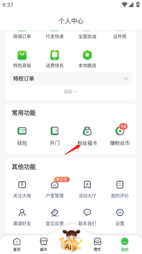 粉丝生活如何绑定粉丝福利卡