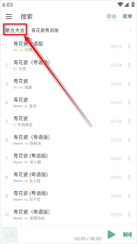 1、搜索便捷,只需在搜索框中输入音乐名称,快速找到对应的歌曲,操作简单直观。