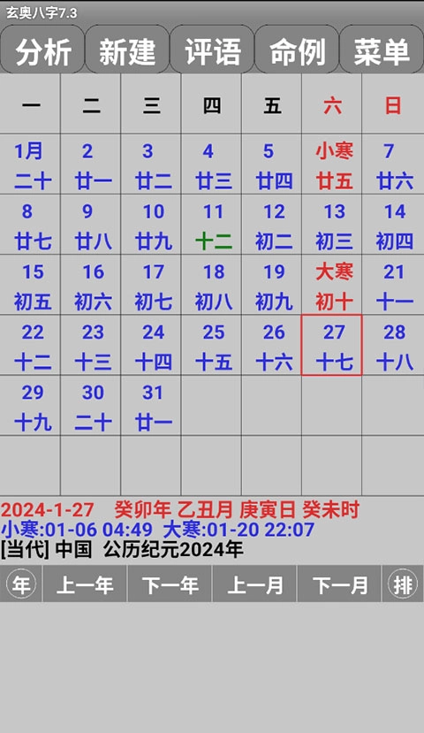 2、“菜单”:排好一个八字盘后,下面会弹出菜单,再点“保存”可以保存八字命例。