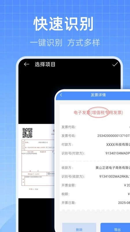 用户也可以对需要的发票来进行快速识别,进而可以极速识别发票,就可快捷准确识别。