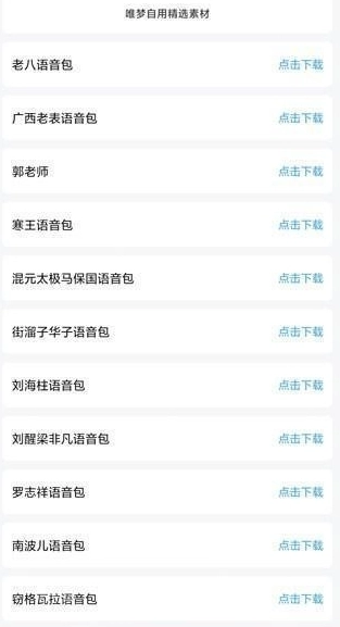 2、语音包可以看到有老八语音包、广西老表语音包、混元太极马保国语音包、罗志祥语音包等
