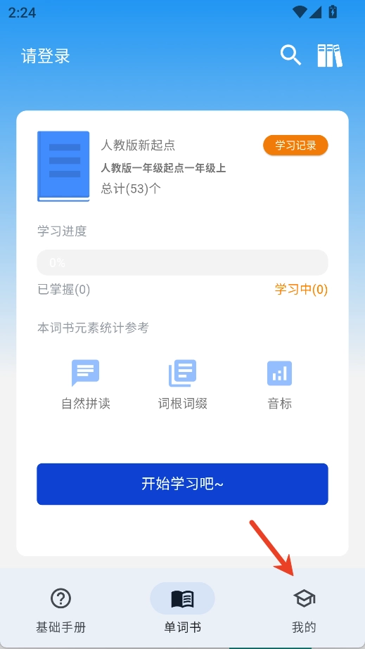 1、安装“起源单词”应用程序后,点击打开该应用,即可开始使用。