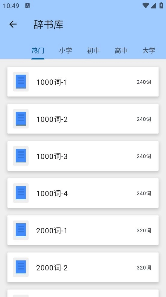 3、用户就可以在起源单词选择适合自己水平的单词库