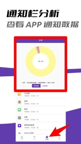 3、点击“分析”查看通知分布数据,统计各应用通知频率,以更直观的方式了解信息。