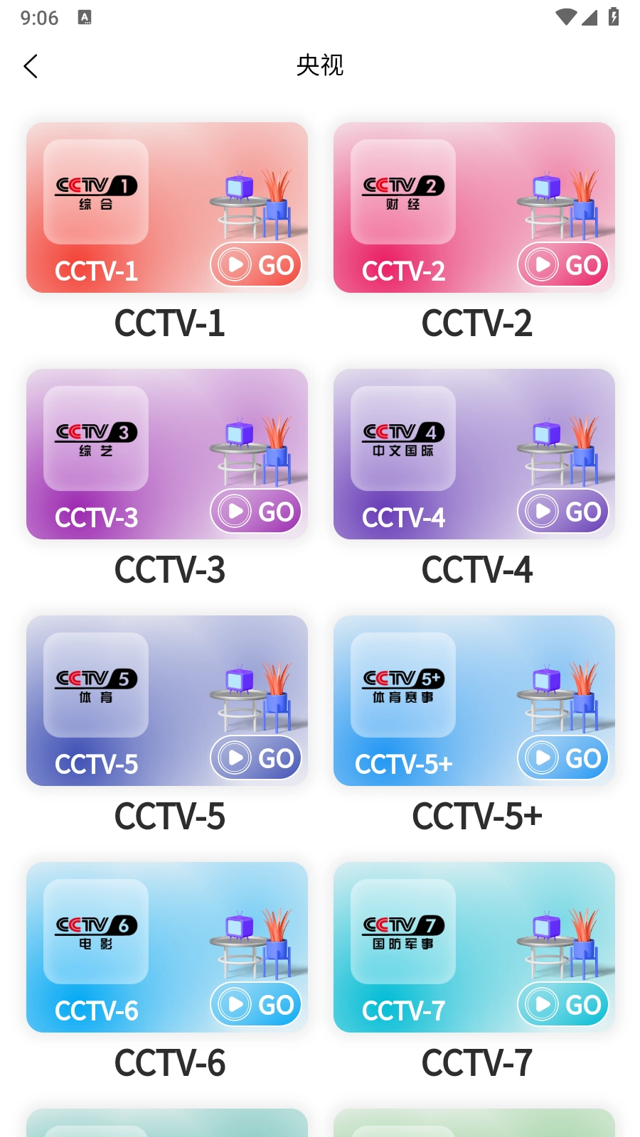 3.以央视台为例,进入央视页面,可以看到全部的CCTV电视频道