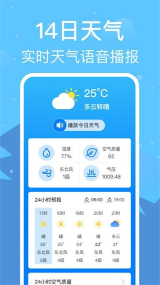 1、精准去开启预报获取,所有的天气信息内容丰富多样,实时获取。