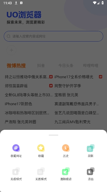 UO浏览器堪称功能卓越的智能移动浏览器,它运用独具特色的U3内核搭配云技术,对HTML5实现完美支持。借助这款软件,用户能够搜索并浏览各类资源,涵盖阅读材料、电影、网络购物平台、小视频、小说以及各类信息。在此,用户可畅享无比顺畅的高速浏览体验,其功能全面且强大。不仅如此,UO浏览器还集合了网络上数量庞大的优质视频、新颖的动漫节目、实时新闻资讯、娱乐八卦消息、内涵段子等内容,为您带来与众不同的体验。感兴趣的朋友千万不要错过UO浏览器。
