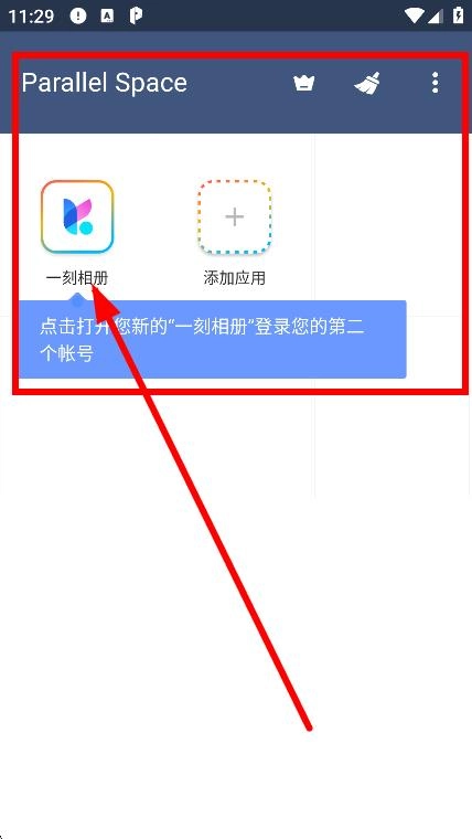 2、进入Parallel Space页面,点击一刻相册,可登录第二个帐号。