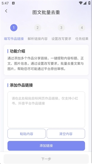 支持同时输入多个小红书、抖音作品分享链接,一键即可实现批量导入。