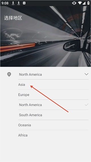 2、然后选择亚洲选项。