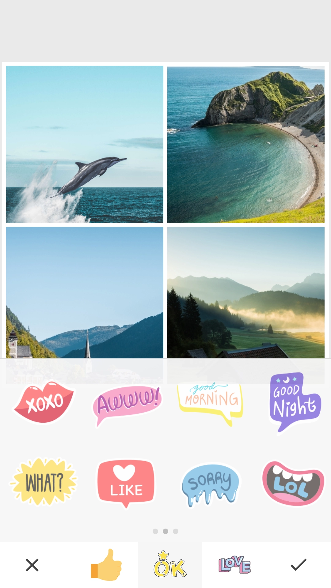 4、提供海量的可爱贴纸和自定义文字编辑功能,方便用户丰富拼接照片的内容和表现力。